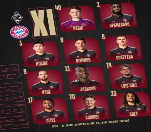 轮换阵容!拜仁客战霍村首发:杰克逊卡尔博伊先发,基米希替补 -